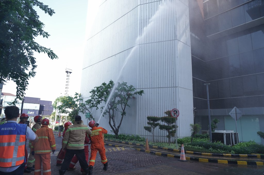 Saat melaksanakan Exersise Drill, Tim yang terlibat dalam kegiatan ini dengan melakukan satu skenario simulasi gempa bumi yang mengakibatkan terbakarnya salah satu lantai gedung.