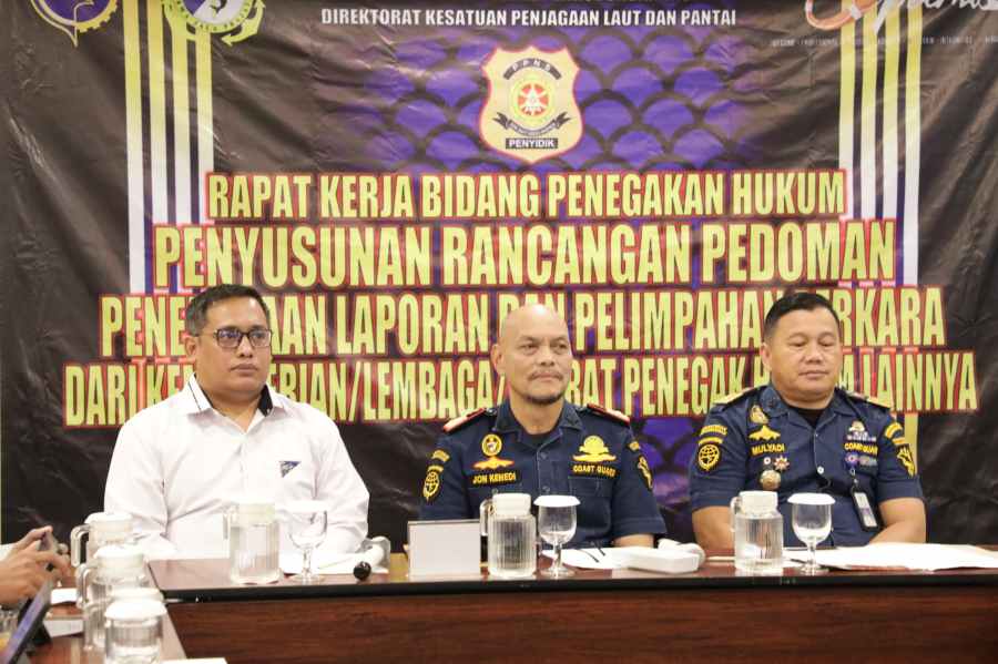 Demikian disampaikan oleh Direktur Kesatuan Penjagaan Laut dan Pantai Jon Kenedi saat memberikan sambutan pada kegiatan Penyusunan Rancangan Pedoman dan Petunjuk Penerimaan Laporan dan Pelimpahan Perkara dari Kementerian/ Lembaga /Aparat Penegak Hukum Lainnya, di Yogyakarta, Rabu (4/7/2024)