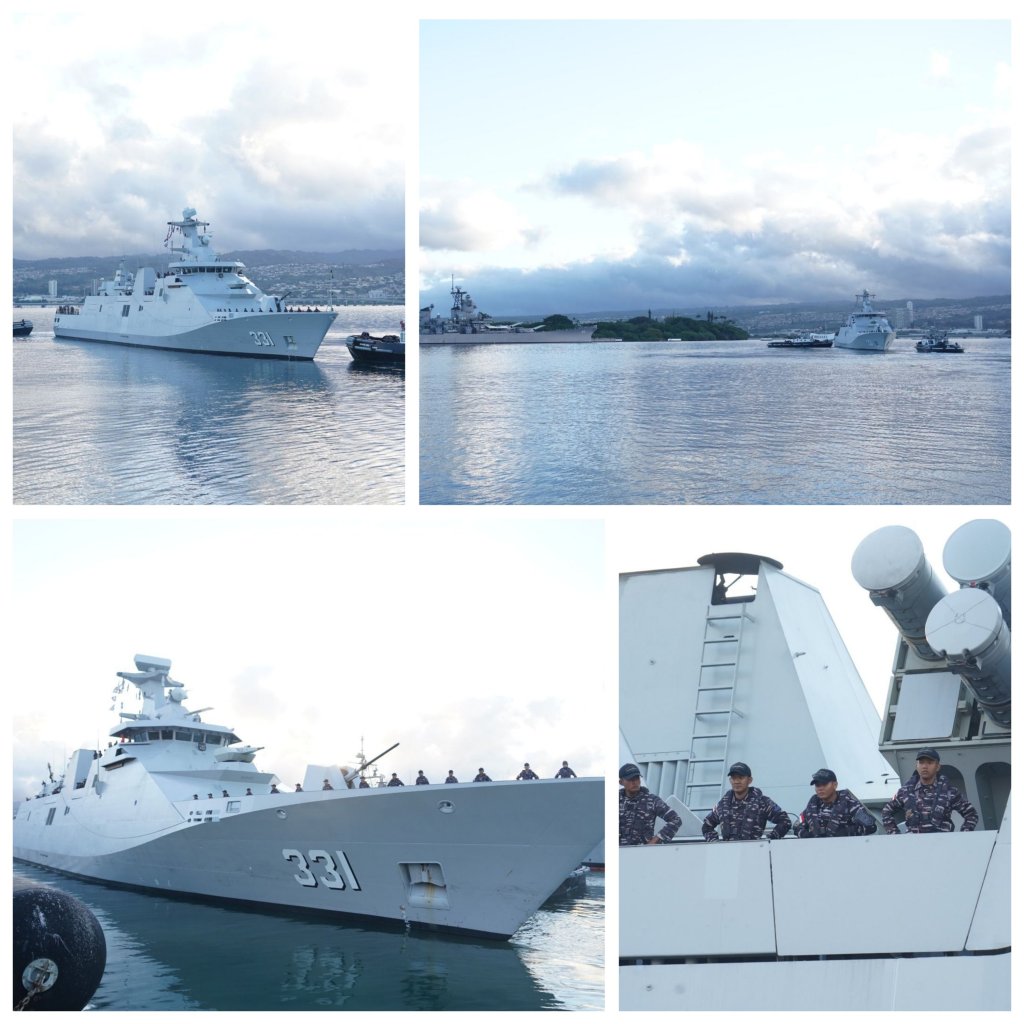 Unsur TNI AL dalam hal ini KRI Raden Eddy Martadinata-331 (KRI REM-331) yang dikomandani oleh Dansatgas Latma Rimpac 2024 Kolonel Laut (P) Adam Tjahja S. mengawali tahap Sea Phase Latma Rimpac 2024 dengan bertolak dari Pearl Harbor menuju Perairan Kepulauan Hawaii, Kamis (11/7/2024)
