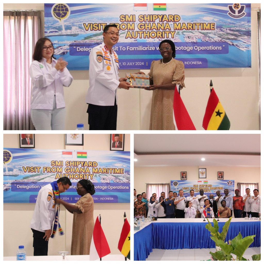 Delegasi Otoritas Maritim negara Ghana saat kunjungannya ke Indonesia berkesempatan mengunjungi Galangan Kapal PT Samudera Marine Indonesia (SMI) yang terletak di Cilegon – Banten Rabu (10/9/2024) yang lalu.
