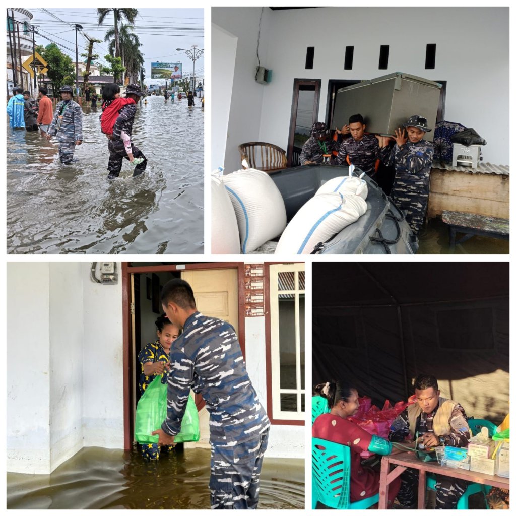 Tim Siaga Bencana Lanal Gorontalo selain memberikan bantuan kesehatan di posko. Lanal juga menurunkan sekoci karet guna melaksanakan evakuasi warga yang masih terjebak banjir, dan melaksanakan pergeseran logistik bagi warga yang masih bertahan di rumahnya.