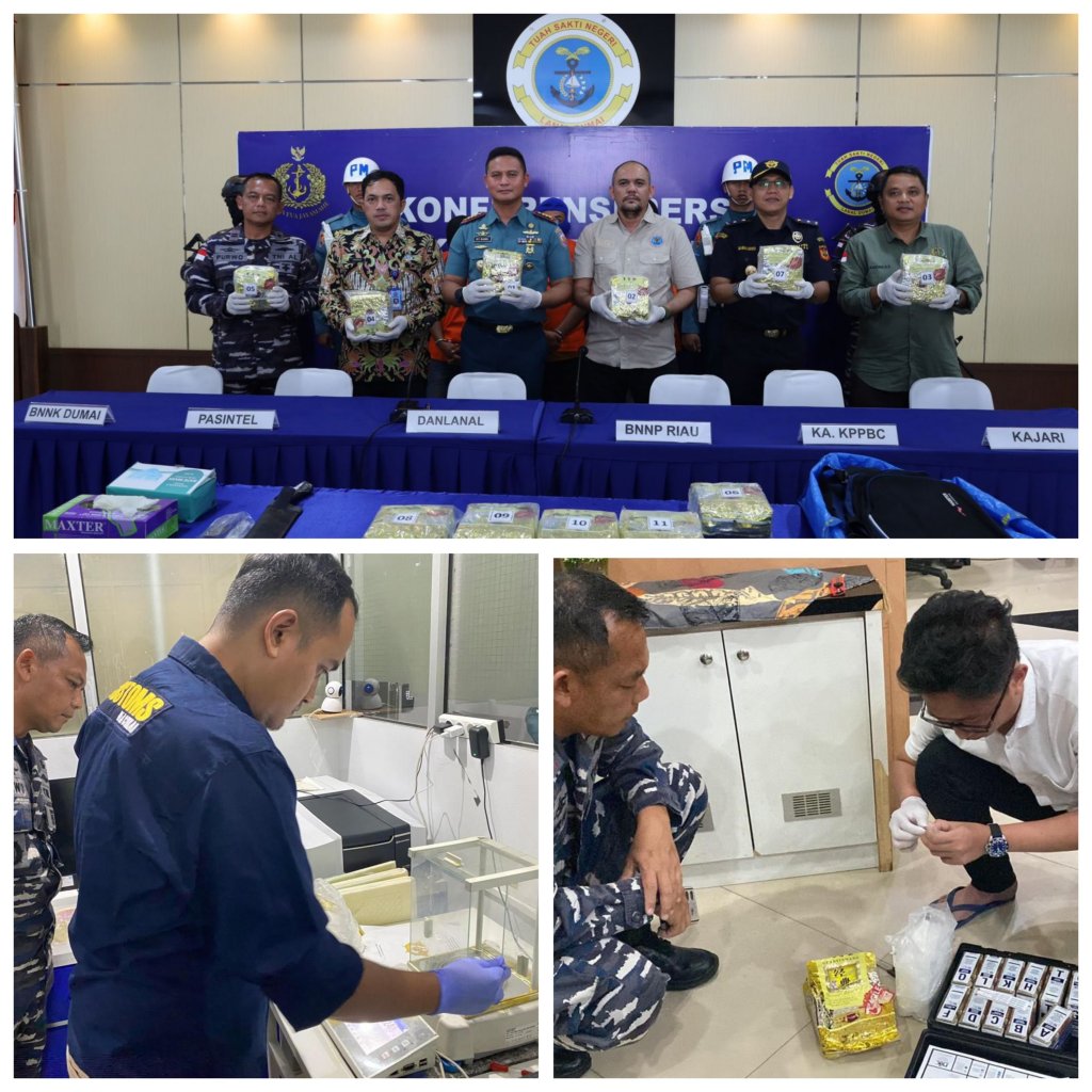 TNI AL terus berkomitmen dalam memberantas upaya peredaran narkoba di Indonesia. Kali ini, upaya Tim Fleet One Quick Response (F1QR) Pangkalan TNI AL (Lanal) Dumai bersinergi dengan Tim Penindakan dan Penyidikan KPP Bea Cukai TMP B Dumai kembali membuahkan hasil, dengan berhasil menggagalkan penyelundupan narkoba berjenis Sabu-sabu dengan berat sekitar 11,668 Kg di Perairan Selinsing, Kabupaten Bengkalis, Riau, Senin (15/7/2024) kemarin.