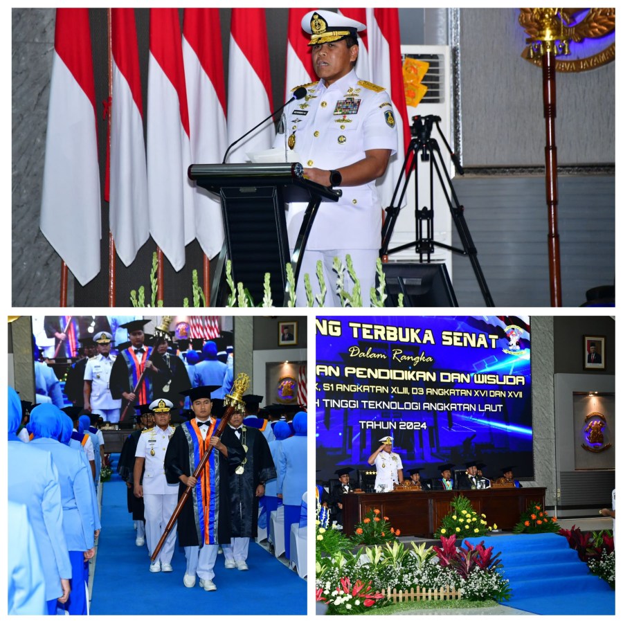 Hal tersedisampaikan Kepala Staf Angkatan Laut (Kasal) Laksamana TNI Dr. Muhammad Ali bertindak selaku Inspektur Upacara (Irup) pada Upacara Penutupan Pendidikan (Tupdik) dan Wisuda program Magister, program Sarjana dan program Diploma 3 di Auditorium Gedung Pulau Marore, Kampus Prajurit Teknokrat Sekolah Tinggi Teknologi Angkatan Laut (STTAL), Bumimoro, Surabaya, Jawa Timur, Jumat (19/7/2024).