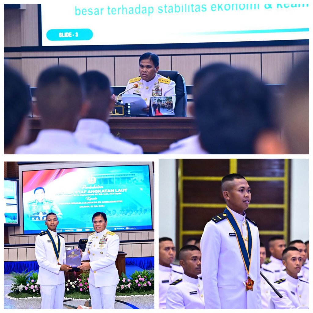 Demikian disampaikan Kepala Staf Angkatan Laut (Kasal) Laksamana TNI Dr. Muhammad Ali pada sambutannya dalam pembekalan kepada 108 Perwira Remaja PA PK TNI AL Angkatan ke-31 Tahun 2024 di Auditorium Yos Sudarso, Denma Mabesal, Cilangkap, Jakarta Timur, Senin (22/7/2024).