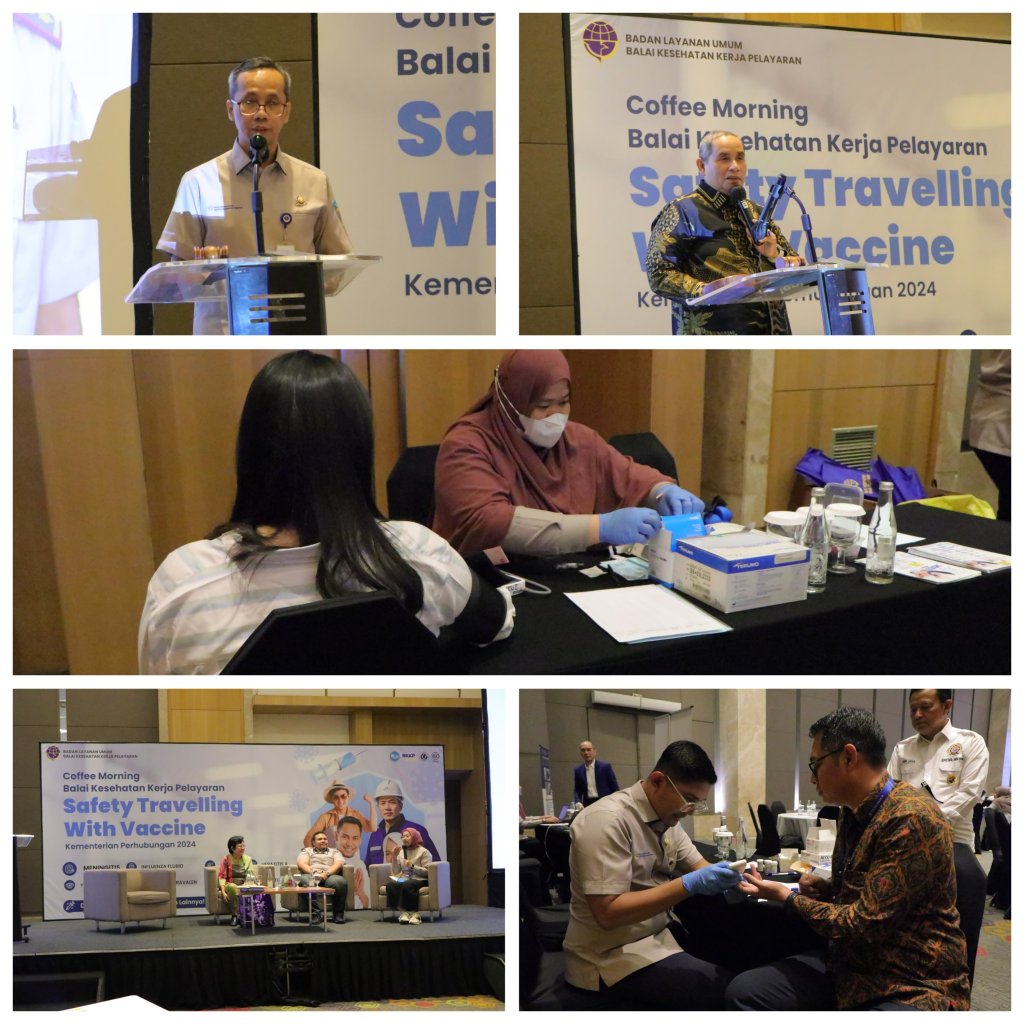 Kementerian Perhubungan cq Direktorat Jenderal Perhubungan Laut menyediakan layanan vaksinasi bagi pelaut, jemaah haji, umroh, dan pelaku perjalanan internasional. Informasi ketersediaan layanan vaksinasi ini disampaikan dalam acara Coffee Morning Balai Kesehatan Kerja Pelayaran (BKKP), di Jakarta Kamis (25/7/2023) yang bertema “Vaksinasi untuk Imunitas Tubuh yang Optimal bagi Pelaut, Jemaah Haji, dan Umroh serta Travellers.”