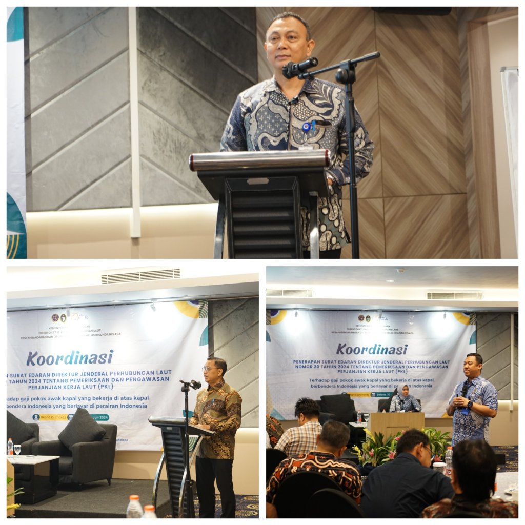 Dalam rangka kegiatan koordinasi penerapan Surat Edaran (S.E.) Direktur Jenderal Perhubungan Laut No. 20 Tahun 2024 tentang Pemeriksaan dan Pengawasan Perjanjian Kerja Laut Terhadap Gaji Pokok Awak Kapal yang bekerja di atas kapal berbendera Indonesia yang diinisiasi Kepala Kantor Kesyahbandaran dan Otoritas Pelabuhan Kelas III Sunda Kelapa Aries Wibowo, S.T., M.Sc. dilaksanakan di Hotel Grand Orchardz, Jakarta, hari ini Selasa (30/7/2024).