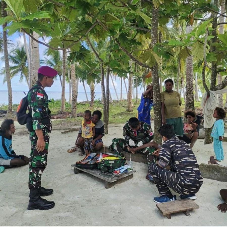 Dalam upaya meningkatkan kesejahteraan masyarakat di wilayah terluar, Prajurit Pos TNI AL (Posal) Pulau Fani dan Prajurit Marinir TNI AL dari Satuan Tugas Pengamanan Pulau Terluar (Satgaspam Puter) melaksanakan kegiatan bakti kesehatan di sekitar Pesisir Pantai Pulau Fani, Raja Ampat, Papua Barat Daya, Rabu (31/7/2024) lalu.