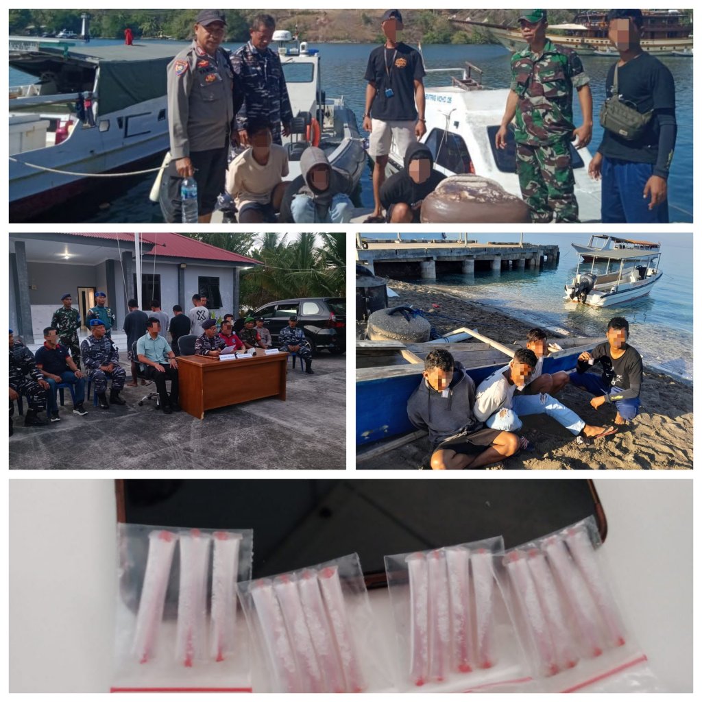 Dihadapan awak media di Mako Lanal Mataram, Jumat (2/8/2024) kemarin, Komandan Lanal (Danlanal) Mataram Kolonel Laut (P) Waluyo menyampaikan bahwa penangkapan tersebut berawal dari informasi masyarakat terkait bahwa adanya beberapa orang tidak dikenal yang berasal dari luar Desa Labuhan Aji diduga sedang melaksanan pesta sabu-sabu disalah satu rumah warga inisial “AR”.
