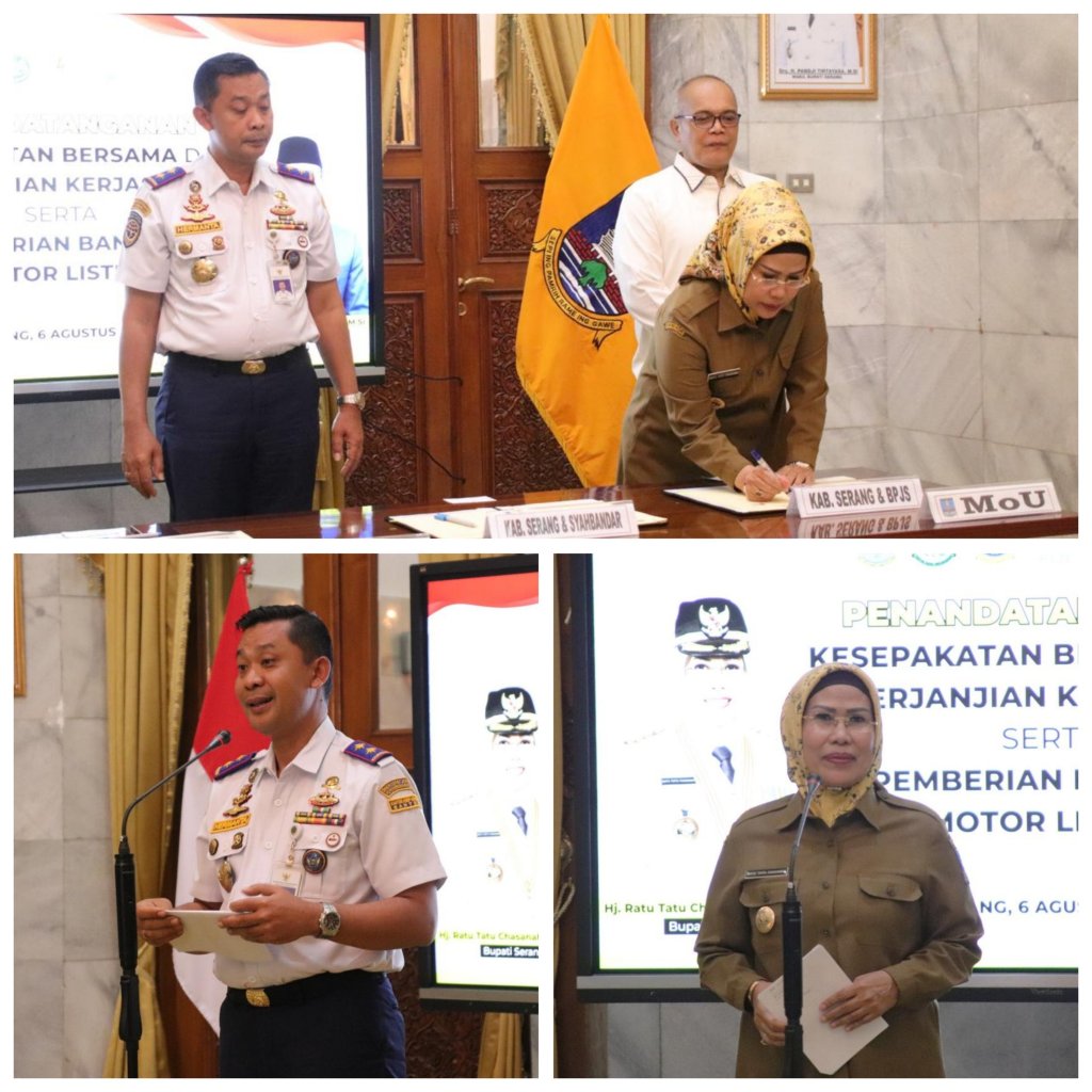 Kementerian Perhubungan Cq Direktorat Jenderal Perhubungan Laut melalui Kantor KSOP Kelas I Banten meningkatkan sinergi dan koordinasi dengan Pemerintah Daerah Kabupaten Serang. Acara ini ditandai dengan penandatanganan dua (2) Kesepakatan Bersama dan empat (4) Perjanjian Kerja Sama, serta pemberian bantuan motor listrik oleh PLN (Persero), di Serang Provinsi Banten, Selasa (6/8/2024).