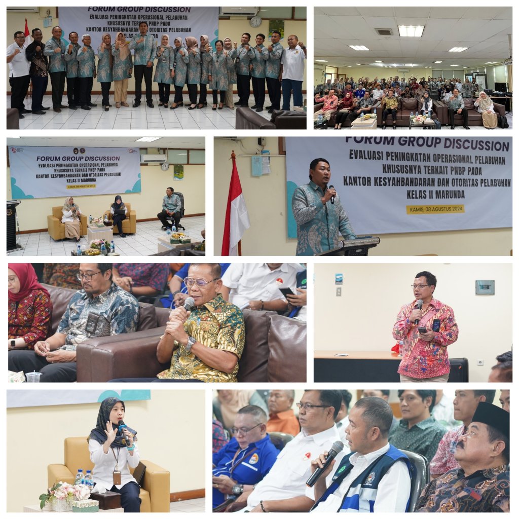 Kementerian Perhubungan Cq Direktorat Jenderal Perhubungan Laut melalui Tim KSOP Kelas II Marunda melaksanakan kegiatan Focus Group Discussion (FGD) dalam rangka menyatukan persepsi mengenai operasional pelabuhan khususnya terkait PNBP, bertempat di Ruang Rapat PT. KBN (P) SBU Kawasan Prima, Marunda Jakarta Utara, Kamis (8/8/2024).
