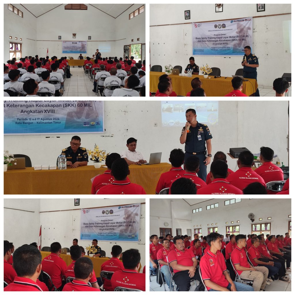Kementerian Perhubungan Cq Direktorat Jenderal Perhubungan Laut melalui Kantor Kesyahbandaran dan Otoritas Pelabuhan (KSOP) Kelas I Samarinda – Kalimantan Timur dengan Poltekpel Barombong – Sulawesi Selatan dan Pemerintah Daerah Kabupaten Kutai Kartanegara bekerjasama menyelenggarakan kegiatan pendidikan dan latihan (Diklat) pemberdayaan Masyarakat Pelayaran Rakyat, di wilayah Kota Bangun, Kabupaten Kutai Kartanegara – Kalimantan Timur, hari ini, Kamis (15/8/2024)