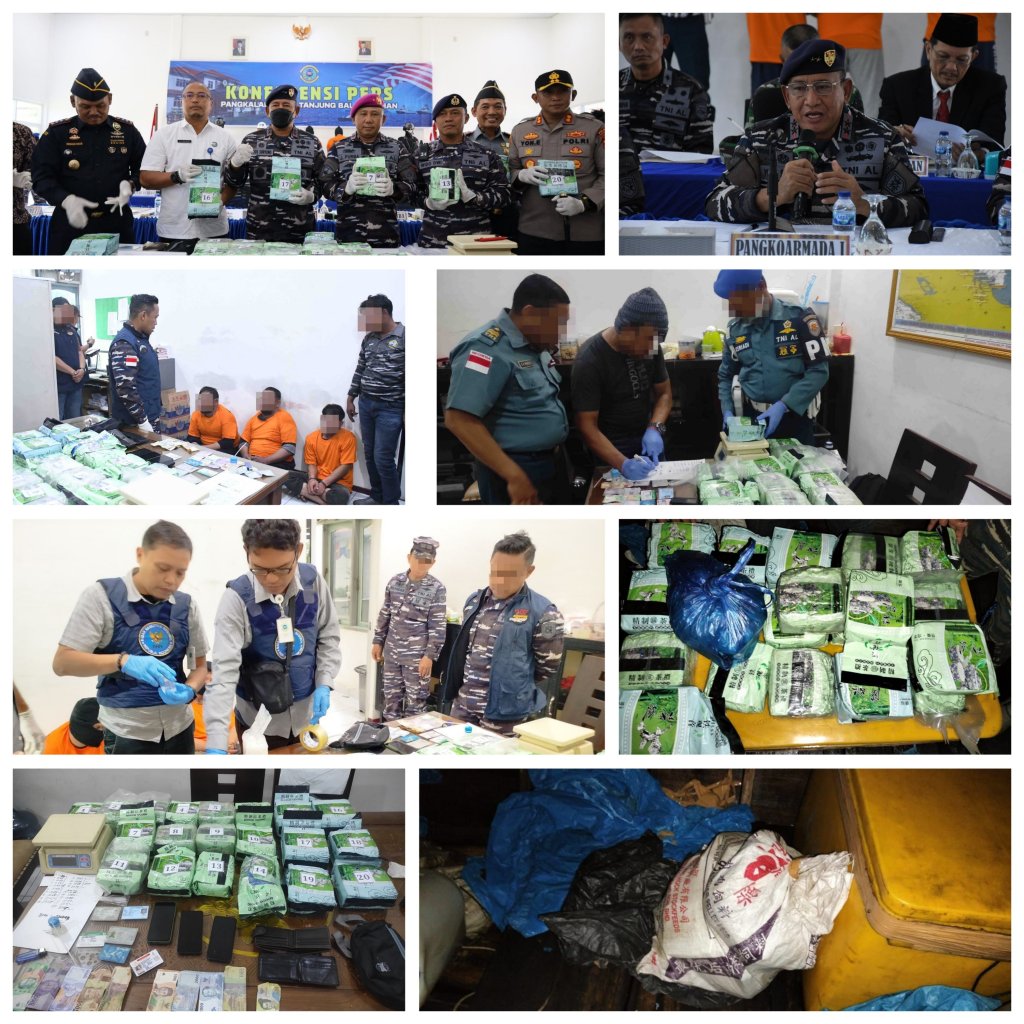 TNI AL melalui Tim Fleet One Quick Response (F1QR) Pangkalan TNI AL Tanjung Balai Asahan (Lanal TBA) berhasil mengamankan tiga orang pembawa 20 bungkus dengan berat total 21.244 gram atau sekitar 21 kg Paket Teh China Hijau yang di duga Narkotika jenis Sabu senilai Rp.25,- miliar rupiah asal Taiwan yang transit di Malaysia dan akan dibawa masuk ke Kota Tanjung Balai – melalui perairan Muara Bagan Asahan – Sumatera Utara. Selasa (13/8/2024) yang lalu.