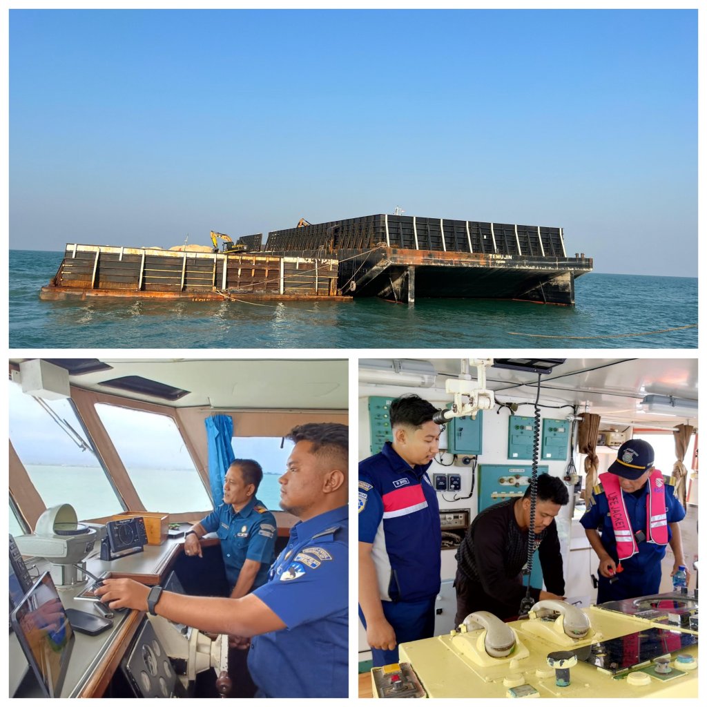 Kementerian Perhubungan Cq Direktorat Jenderal Perhubungan Laut melalui Kantor KSOP Kelas II Cirebon bersama stakeholder terkait berhasil menyandarkan Kapal Tugboat TB.HUB 19 yang menarik Tongkang TK.Highline 52 berbendera Malaysia yang sedang mengalami kebocoran,di perairan Cirebon,Senin (19/8/2024) kemarin.