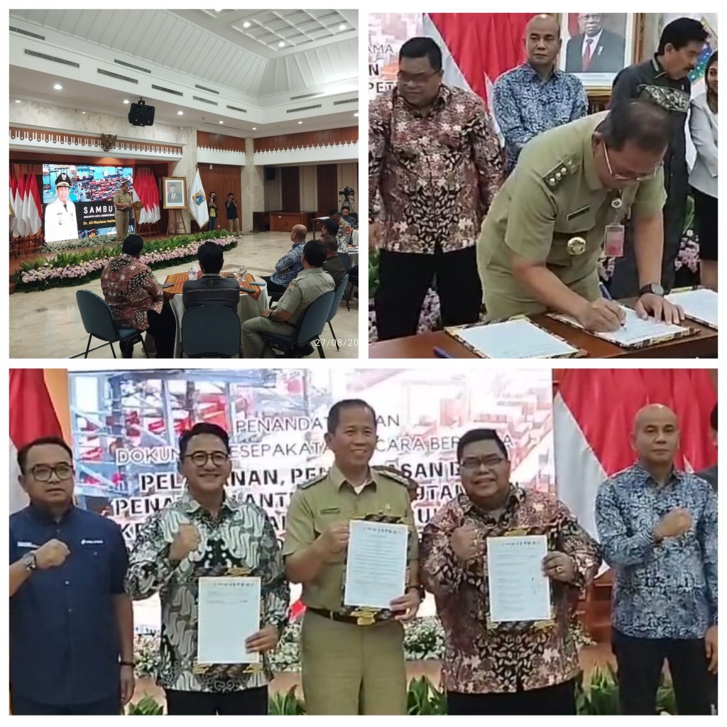 Walikota Kota Administrasi Jakarta Utara, Ali Maulana Hakim melaksanakan penandatanganan dokumen kesepakatan bersama (MoU) bertempat di Ruang Fatahillah Lantai 2 Kantor Walikota Kota Administrasi Jakarta Utara, Selasa (27/8/2024).