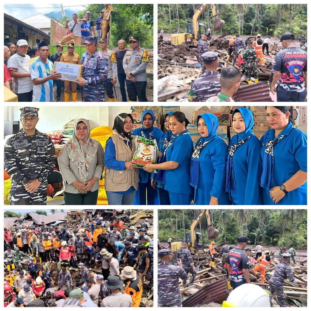 “Hingga saat ini seluruhnya masih melakukan bantuan evakuasi pencarian korban jiwa dan membersihkan fasilitas umum. Selain itu, Ibu-ibu Pengurus Jalasenastri Lanal Ternate juga memberikan bantuan berupa Sembako kepada terdampak korban bencana banjir bandang,” jelas Komandan Lanal Ternate.