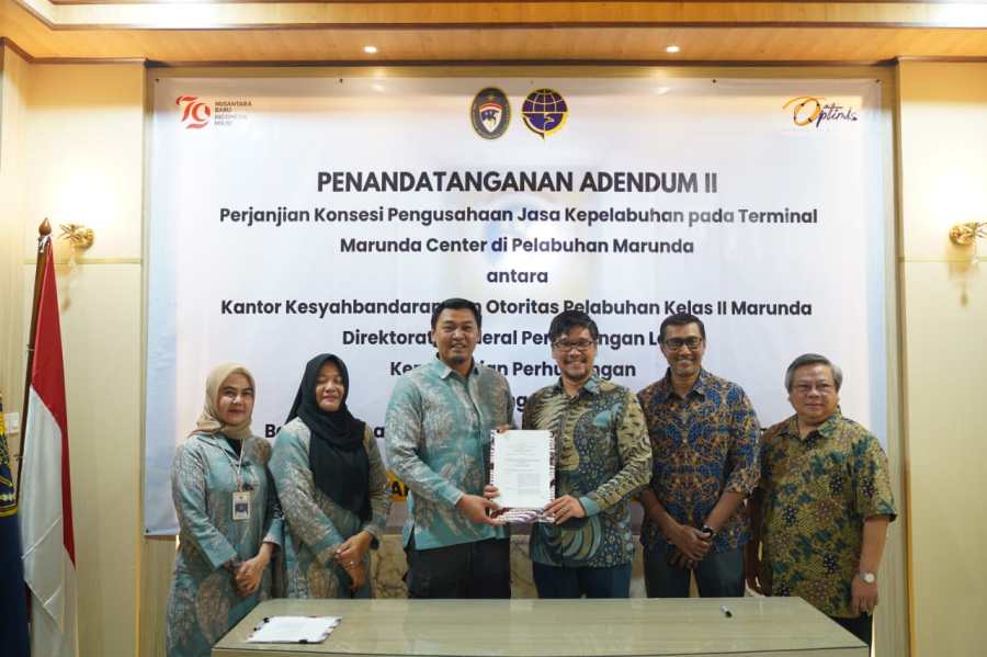 Kementerian Perhubungan Cq Direktorat Jenderal Perhubungan Laut melalui Kepala Kantor Kesyahbandaran Otoritas Pelabuhan (KSOP) Kelas II Marunda melaksanakan acara penandatanganan Adendum II atas Perjanjian Konsesi Pengusahaan Kepelabuhanan antara PT. Pelabuhan Tegar Indonesia (PT PTI) dengan Kantor KSOP Kelas II Marunda, bertempat di Ruang Rapat KSOP Kelas II Marunda, Jakarta Utara, Jumat (30/8/2024).