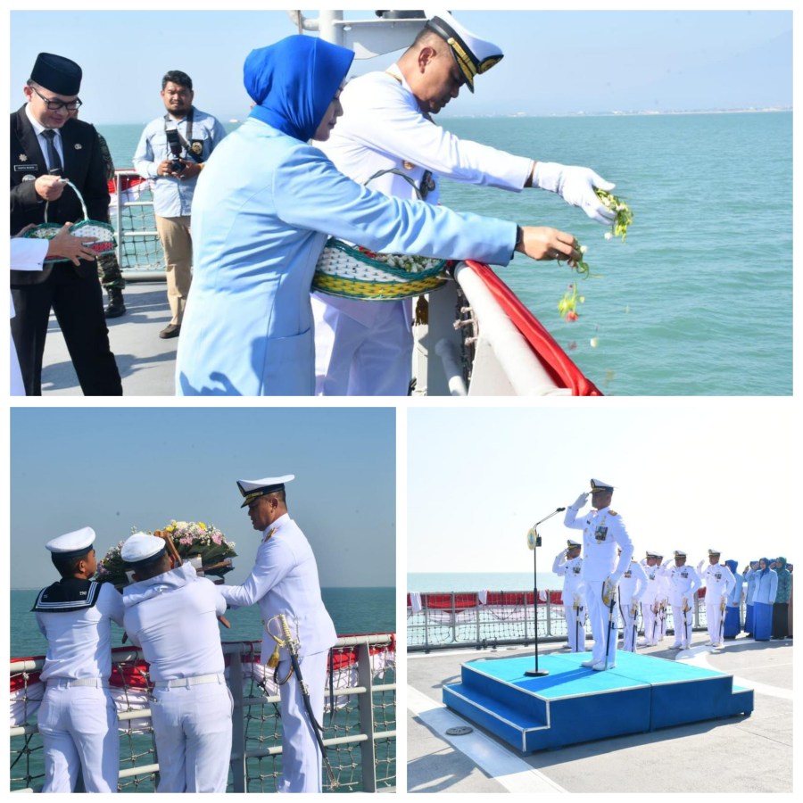 Sebagai wujud penghormatan terhadap jasa para pahlawan yang telah gugur dalam tugas di pertempuran laut Cirebon, TNI AL menggelar Upacara Tabur Bunga yang merupakan rangkaian dalam peringatan Hari Ulang Tahun (HUT) TNI AL yang jatuh pada tanggal 10 September 2024 mendatang, di atas Geladak KRI Bung Karno-369 yang sedang berlayar di Perairan Teluk Cirebon, Rabu (4/9/2024).
