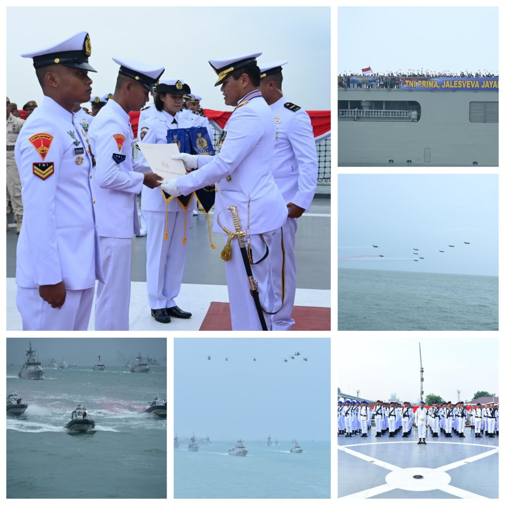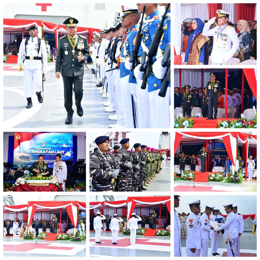 Peringatan Hari Ulang Tahun Ke-79 TNI AL yang jatuh pada setiap tanggal 10 September dipusatkan di Jakarta dipimpin langsung Panglima TNI Jenderal TNI Agus Subiyanto didampingi Kepala Staf Angkatan Laut (Kasal) Laksamana TNI Dr. Muhammad Ali bertempat di Geladak Heli KRI dr. Widyodiningrat-992 yang berlayar di Teluk JakartaSelasa (10/9/2024).