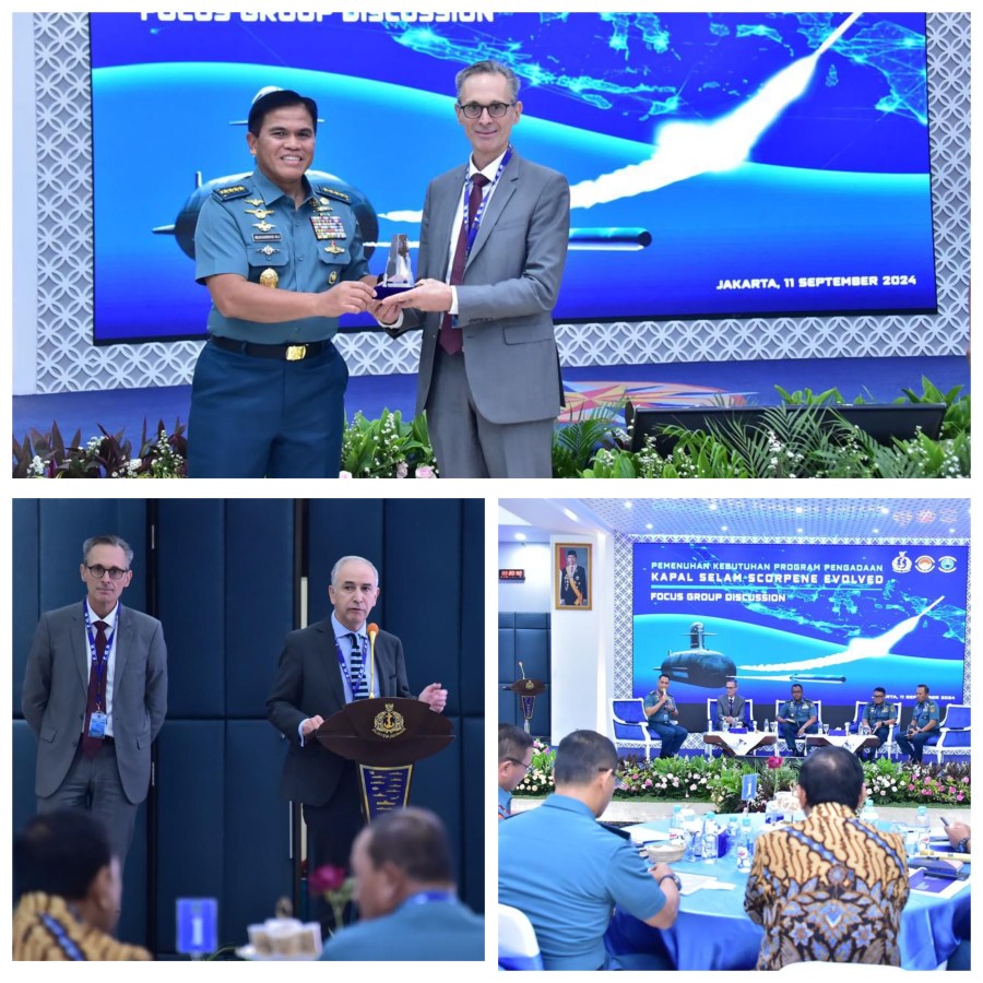 Pada FGD ini juga disampaikan sejumlah paparan penting yaitu “Concept of Scorpene Submarine Development Plan” yang disampaikan oleh VP Bid and Development, Submarine Division Naval Group Antoine Garreta, “Strategi Pemenuhan Kebutuhan Logistik dan Pangkalan Kapal Selam Scorpene” yang disampaikan oleh Asisten Logistik (Aslog) Kasal Laksamana Muda TNI Eko Sunarjanto, “Strategi Pemenuhan Senkomlek dan Fasilitas Pendukung Kapal Selam Scorpene” yang disampaikan oleh Asisten Komunikasi dan Elektronika (Askomlek) Kasal Laksamana Muda TNI Tri Harsono.