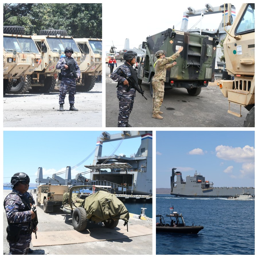 TNI AL dalam hal ini Prajurit Pangkalan TNI AL (Lanal) Banyuwangi kembali bertugas mengamankan kegiatan embarkasi material dan Alutsista milik US Army di Pelabuhan Tanjung Wangi, Ketapang Banyuwangi. Kegiatan ini merupakan tindak lanjut dari suksesnya pelaksanaan Latihan Gabungan Bersama (Latgabma) Super Garuda Shield (SGS) 2024 yang telah dilaksanakan di wilayah Kabupaten Banyuwangi dan Situbondo, Jawa Timur,Kamis (12/9/2024).