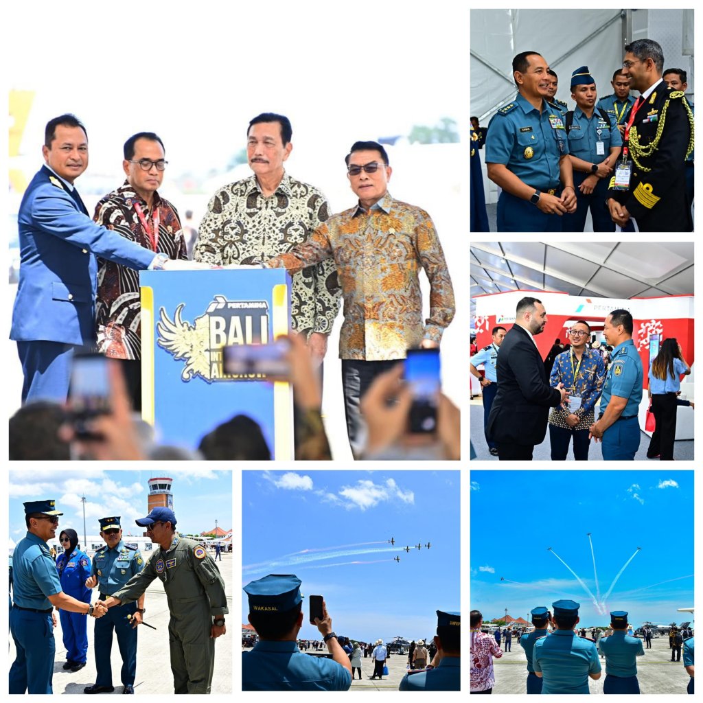 Wakil Kepala Staf Angkatan Laut (Wakasal) Laksamana Madya TNI Erwin S. Aldedharma mewakili Kasal Laksamana TNI Dr. Muhammad Ali menghadiri Pembukaan Pameran Dirgantara Bali International Airshow (BIAS) 2024 yang dipimpin oleh Menteri Koordinator Bidang Kemaritiman dan Investasi (Menko Marves) Luhut Binsar Pandjaitan dan menyaksikan langsung Tim RaLF mengudara di General Aviation Terminal (GAT), Bandara Internasional I Gusti Ngurah Rai, Bali, Rabu (18/9/2024) kemarin.
