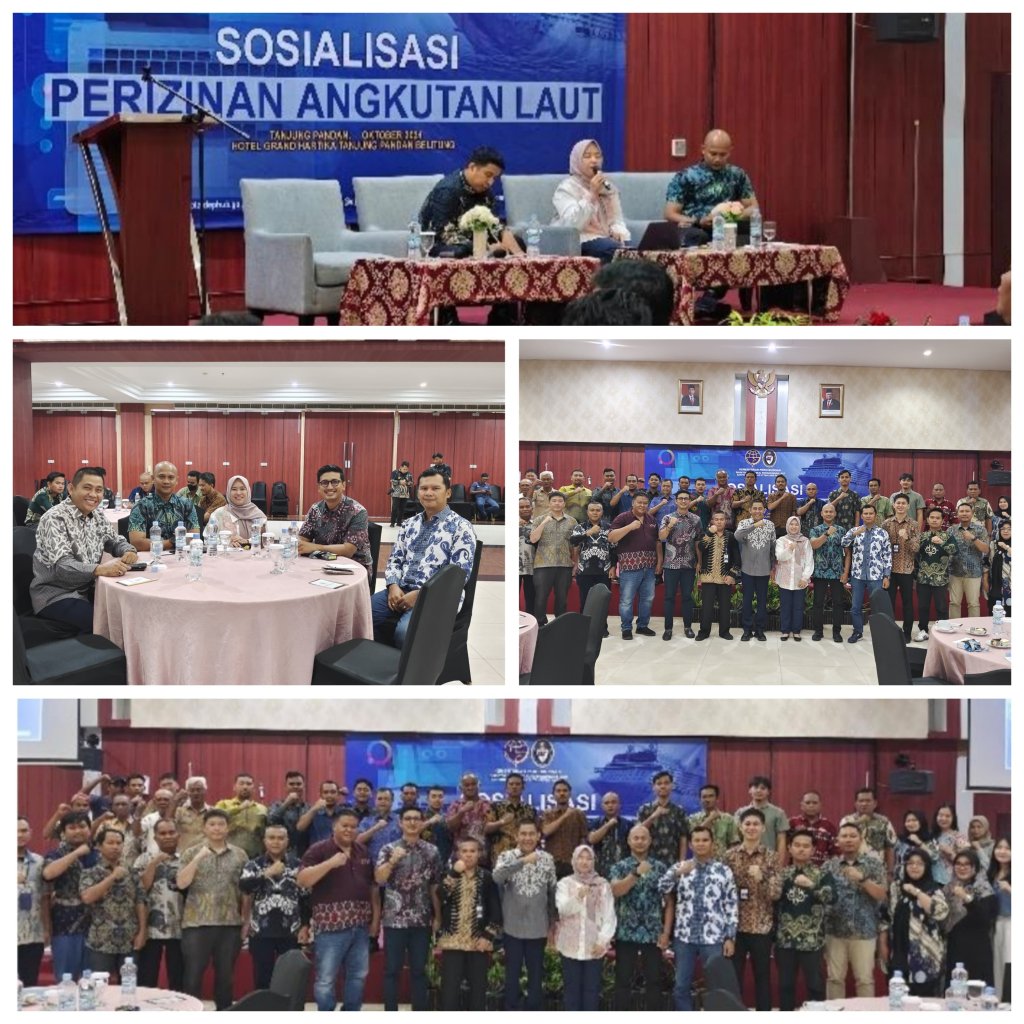 Kementerian Perhubungan Cq Direktorat Jenderal Perhubungan Laut melalui Kepala Kantor Kesyahbandaran dan Otoritas Pelabuhan Kelas IV Tanjungpandan Provinsi Bangka Belitung menggelar kegiatan “Sosialisasi Perizinan Angkutan Laut, Keagenan Kapal, Usaha Jasa Terkait dan Penanganan Bongkar Muat Barang di Pelabuhan“ bertempat di Hotel Grand Hatika, Belitung, Rabu (9/10/2024).