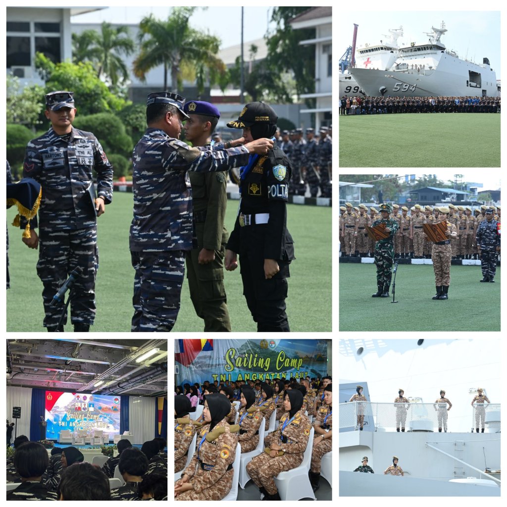 Guna mewujudkan generasi muda yang memiliki wawasan kebangsaan yang tinggi, peduli pada lingkungannya sehingga menciptakan kecintaan bahari sebagai alat juang yang tangguh bagi pertahanan negara. TNI AL menggelar kegiatan Sailing Camp ditandai dengan upacara pembukaan dan pelepasan yang dipimpin oleh Asisten Potensi Maritim Kepala Staf Angkatan Laut (Aspotmar Kasal) Mayjen TNI Mar Dr. Hermanto mewakili Kasal Laksamana TNI Dr. Muhammad Ali bertempat di Dermaga Kolinlamil, Jakarta Utara. Jum’at (11/10/2024).