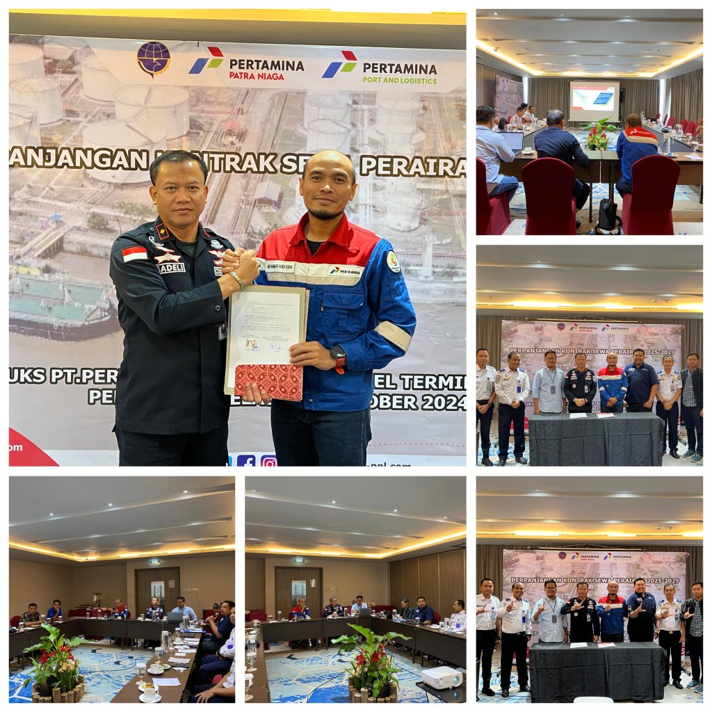 Kementerian Perhubungan melalui Kantor Kesyahbandaran dan Otoritas Pelabuhan (KSOP) Kelas II Pekanbaru melakukan Perpanjangan Perjanjian Penggunaan Perairan Terminal Untuk Kepentingan Sendiri (TUKS) PT. Pertamina Patra Niaga Fuel Tahun 2025-2029 Terminal Sei Siak, Pekanbaru, Provinsi Riau, bertempat di Hotel Novotel, Selasa (15/10/2024).
