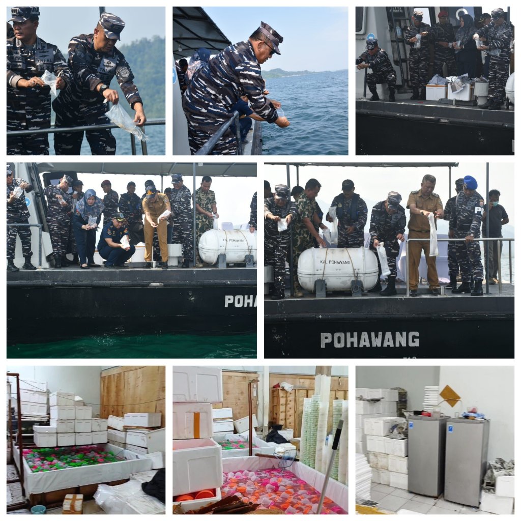 Turut hadir dalam konferensi pers tersebut Komandan Lantamal III Brigjen TNI Marinir Harry Indarto, S.E., M.M., Komandan Lanal Lampung, Kolonel Laut (P) Dwi Atmojo, dan Koordinator Satwas SDKP Pesawaran Ibu Emy Ramadhani, S.Pi.(MM/Dispenal).