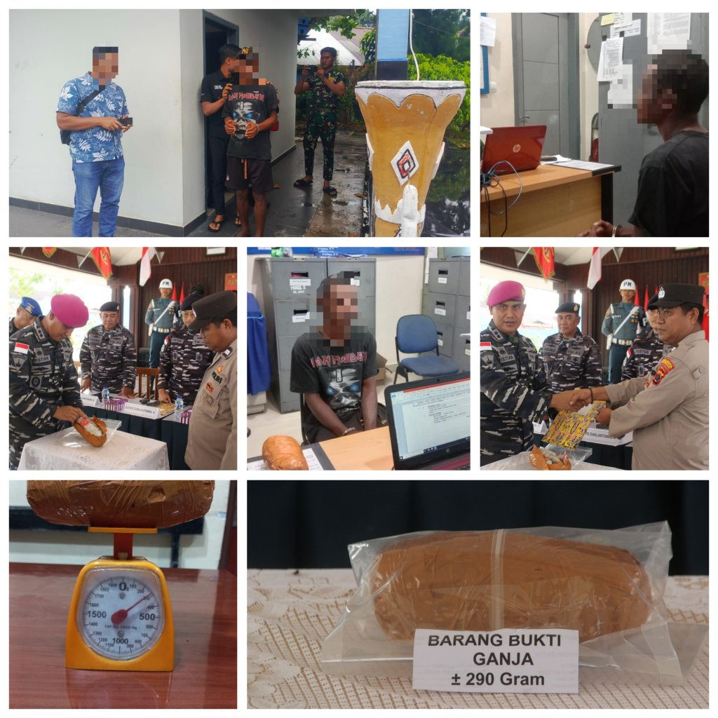Pelaku kemudian diperiksa oleh personel Pam Pelabuhan Yonmarhanlan X Jayapura dan ditemukan 1 paket ganja dibungkus lakban cokelat seberat 290 gram. Selanjutnya pelaku dibawa ke Kantor Pomal Lantamal X Jayapura untuk dimintai keterangan lebih lanjut.