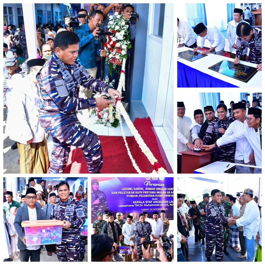 Berkomitmen untuk memberikan manfaat yang besar bagi masyarakat, TNI AL yang dipimpin oleh Kepala Staf Angkatan Laut (Kasal) Laksamana TNI Dr. Muhammad Ali meresmikan Gedung Santri, Rumah Singgah Santri Lansia dan peletakan batu pertama Masjid Ar-Rahman Ar-Rahim di Pondok Pesantren Roudhotun Nawawi Desa Lebak Agung, Kecamatan Karang Pawitan, Kabupaten Garut, Jawa Barat. Sabtu (26/10/2024) kemarin.