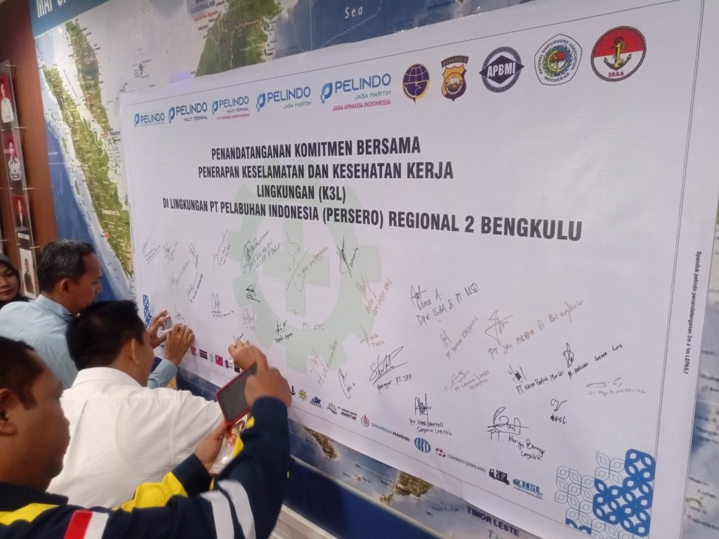 Dalam upaya memperkuat penerapan standar keselamatan dan kesehatan kerja, PT Pelabuhan Tanjung Priok Cabang Bengkulu (PTP Non Petikemas) Cabang Bengkulu berkolaborasi dengan PT Pelabuhan Indonesia (Persero) Regional 2 Bengkulu menggelar kegiatan HSSE Forum dan Penandatanganan Komitmen Keselamatan Kerja bersama stakeholder pelabuhan di Bengkulu baru – baru ini.