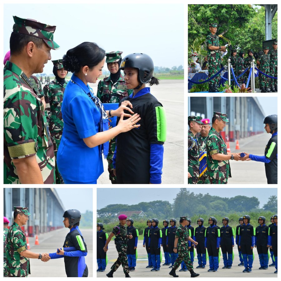 Wakil Kepala Staf Angkatan Laut (Wakasal) Laksdya TNI Erwin S. Aldedarma mewakili Kasal Laksamana TNl Dr. Muhammad Ali menutup secara resmi Pelatihan Terjun Payung Free Fall Korps Wanita Angkatan Laut (Kowal) di Apron Delta Skuadron Udara 400 Wing Udara 2 Puspenerbal, Juanda. Surabaya, Selasa (26/11/2024).