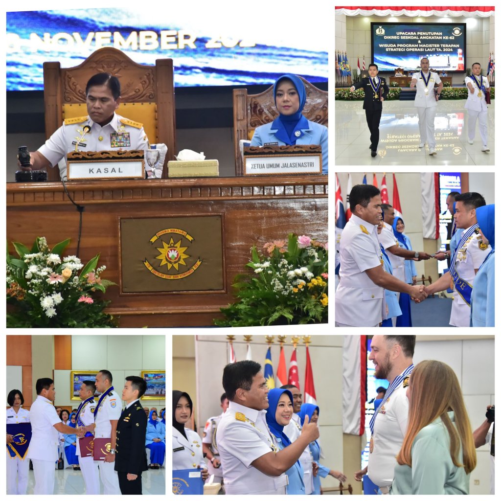 Hal tersebut disampaikan Kepala Staf Angkatan Laut (Kasal) Laksamana TNI Dr. Muhammad Ali saat memimpin Upacara Penutupan Pendidikan Reguler (Dikreg) Sekolah Staf dan Komando Angkatan Laut (Seskoal) Angkatan Ke-62 Tahun Anggaran 2024 bertempat di Aula Gedung Yos Soedarso Seskoal, Kebayoran Lama, Cipulir, Jakarta Selatan, hari ini, Kamis (28/11/2024).