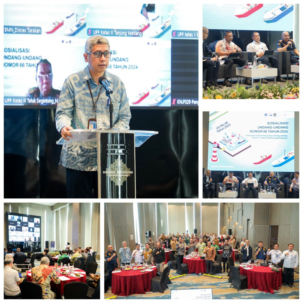Kementerian Perhubungan melalui Direktorat Jenderal Perhubungan Laut melakukan Sosialisasi Undang – Undang Nomor.66 Tahun 2024 tentang Perubahan Ketiga Atas Undang – Undang Nomor. 17 Tahun 2008 tentang Pelayaran bertempat di Hotel Grand Mercure, Kemayoran Jakarta, harKamis (28/11/2024).