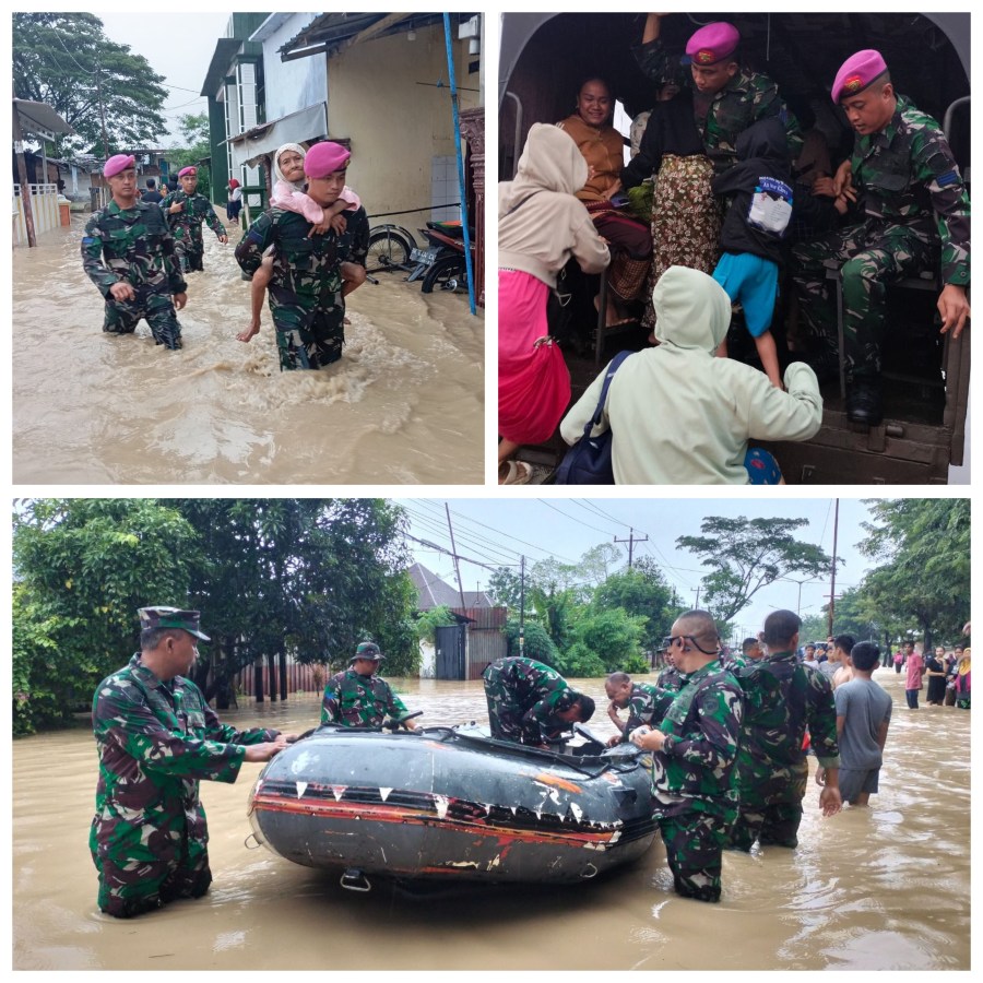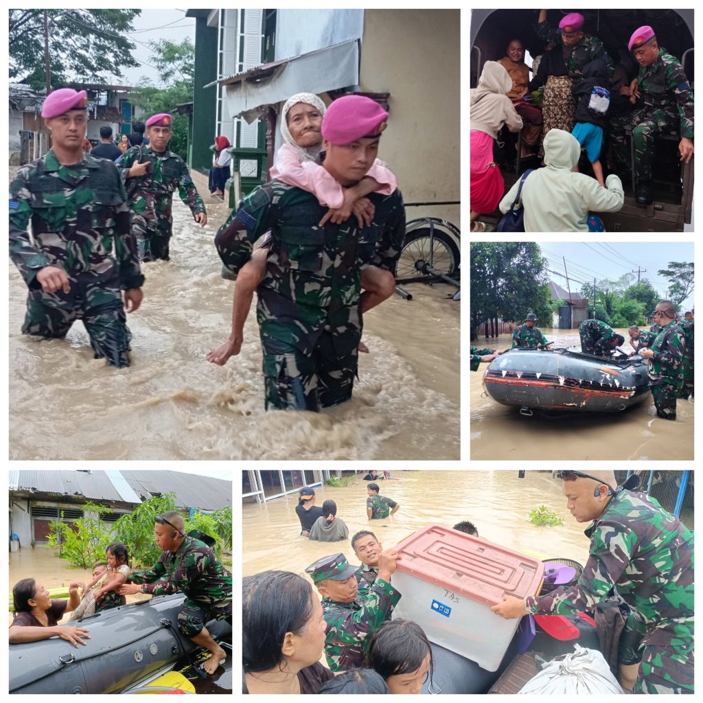 TNI AL dengan gerak cepat mengerahkan bantuan ke wilayah terdampak bencana, kali ini Batalyon Marinir Pertahanan Pangkalan (Yonmarhanlan) l Belawan melaksanakan Search and Rescue (SAR) kepada warga yang mengalami musibah banjir di wilayah Medan, Sumatera Utara. Rabu (27/11/2024) kemarin.