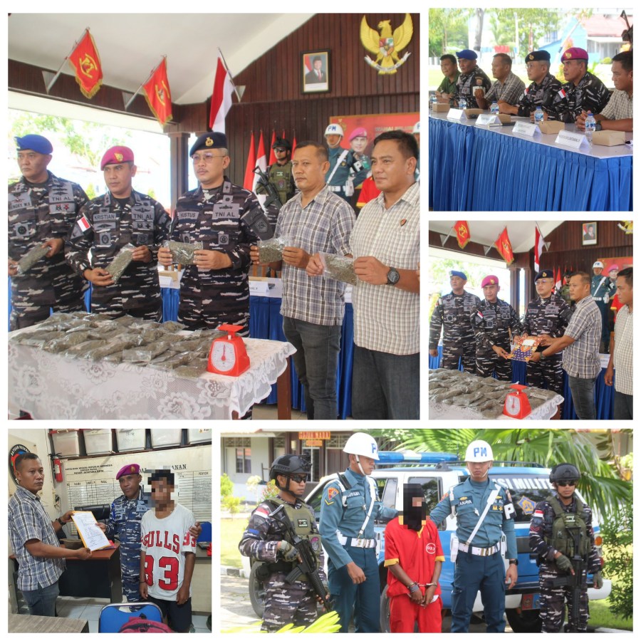 TNI AL dalam hal ini prajurit Batalyon Marinir Pertahanan Pangkalan (Yonmarhanlan) X Jayapura Pasmar 3 berhasil menggagalkan penyelundupan narkoba jenis ganja sebanyak 35 paket seberat 720 gram yang dibawa penumpang KM Gunung Dempo yang sedang berlabuh di Pelabuhan Port Numbay, Kota Jayapura, Papua. Jumat (29/11/2024) lalu.
