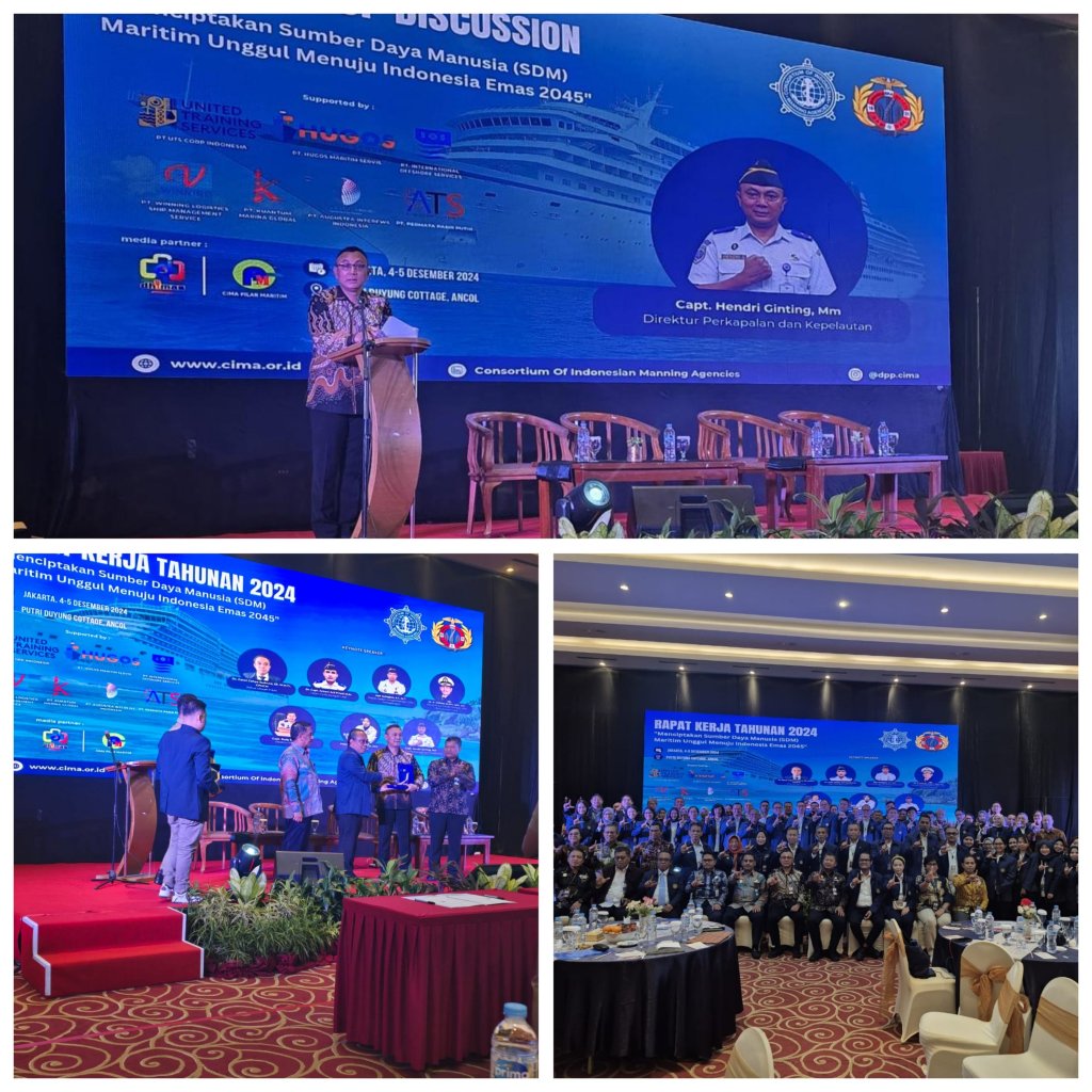 Demikian disampaikan Direktur Jenderal Perhubungan Laut yang diwakili oleh Direktur Perkapalan dan Kepelautan Capt. Hendri Ginting saat membuka Rapat Kerja Tahunan Consortium of Indonesia Manning Agencies (CIMA) 2024 yang mengusung tema “Menciptakan Sumber Daya Manusia (SDM) Maritim Unggul Menuju Indonesia Emas 2045” di Jakarta, Rabu (4/12/2024) kemarin.