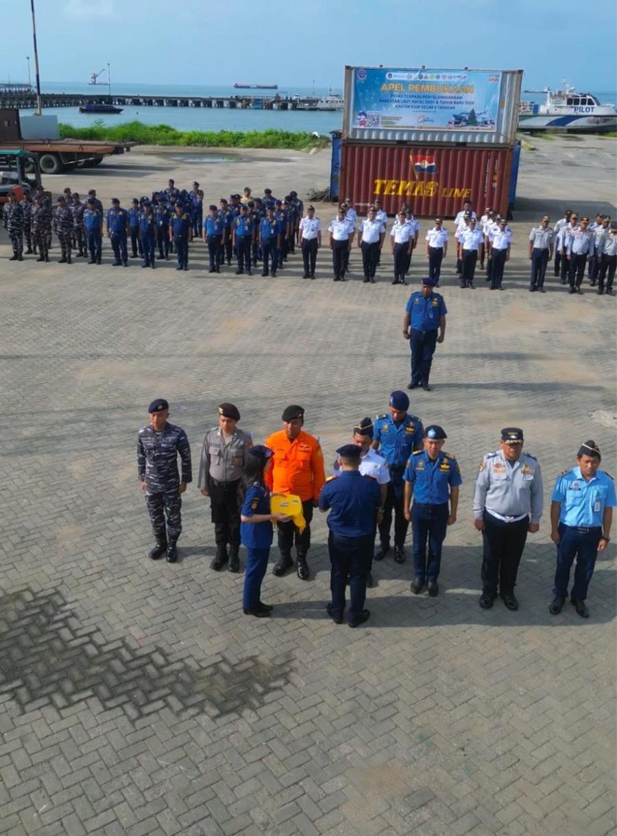 Kantor Kesyahbandaran dan Otoritas Pelabuhan (KSOP) Kelas II Tarakan menggelar Apel Pembukaan Pos Koordinasi (Posko) Penyelenggaraan Angkutan Laut dalam rangka menghadapi liNatal Tahun 2024 dan Tahun Baru 2025 (Nataru). Kegiatan ini dilaksanakan pada Selasa (17/12/2024) lalu sebagai langkah kesiapsiagaan untuk memastikan kelancaran dan keselamatan transportasi laut selama masa liburan Nataru.
