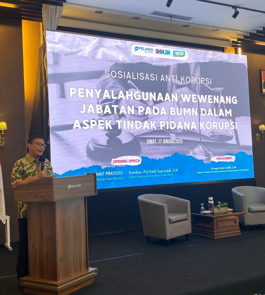 Setelah melaksanakan lomba orasi untuk internalisasi budaya anti korupsi pada peringatan Hari Anti Korupsi Sedunia pada tanggal 6 Desember 2024 lalu, kali ini PT Pelindo Jasa Maritim (SPJM) menggelar Sosialisasi Anti Tindak Pidana Korupsi (Tipikor), di Makassar, Jumat (17/1/2025).