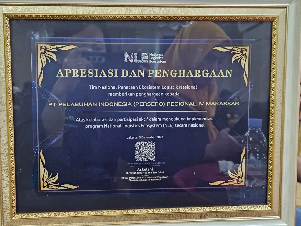 Dia mengungkapkan bahwa penghargaan ini diberikan sebagai bentuk pengakuan atas kolaborasi dan partisipasi aktif Pelindo Regional 4 dalam mendukung implementasi program NLE secara nasional.