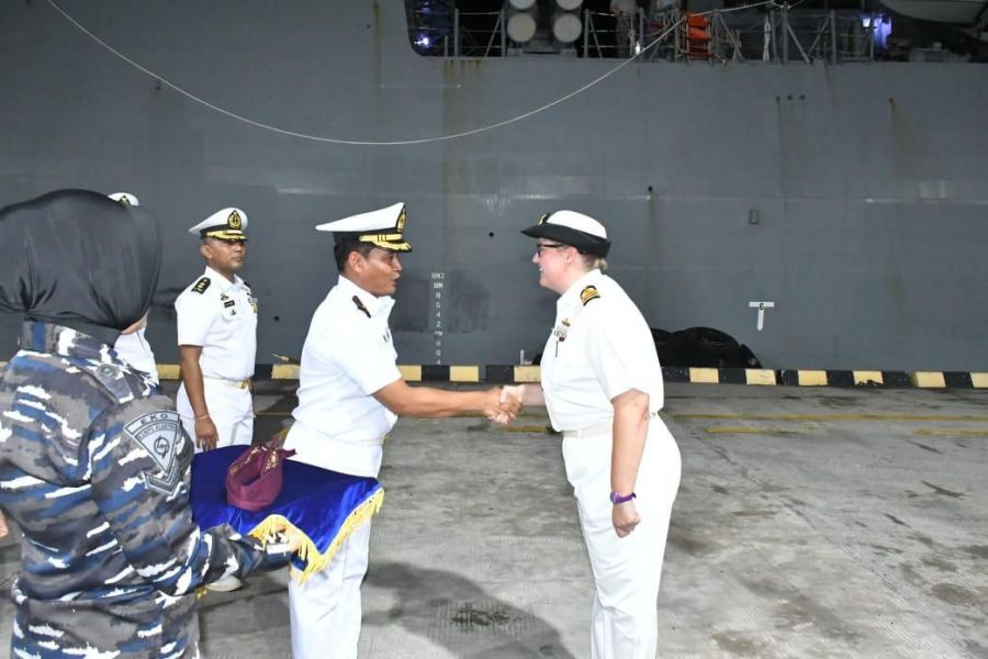 Penyambutan Kapal Perang Asing di Perairan Indonesia ini selaras dengan kebijakan Kepala Staf Angkatan Laut (Kasal) Laksamana TNI Dr. Muhammad Ali dalam meningkatkan hubungan diplomasi dengan negara-negara sahabat guna mewujudkan kejayaan Angkatan Laut “Jalesveva Jayamahe“.(Red-MM/Dispenal).