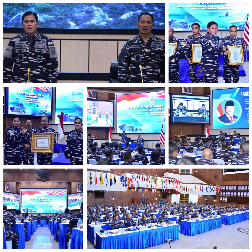 Kepala Staf Angkatan Laut (Kasal) Laksamana TNI Dr. Muhammad Ali didampingi Wakil Kepala Staf Angkatan Laut (Wakasal) Laksamana Madya TNI Erwin S. Aldedharma memimpin secara langsung Rapat Pimpinan (Rapim) TNI AL 2025 bertempat di Auditorium Denma Mabesal, Cilangkap, Jakarta Timur, Kamis (6/2/2025). Kegiatan diikuti sebanyak 141 Perwira yang terdiri dari 106 Perwira Tinggi yang ada dalam struktural TNI AL dan 17 Perwira Menengah Mabesal, serta 35 Perwira Tinggi TNI AL yang berada di luar struktual TNI AL.