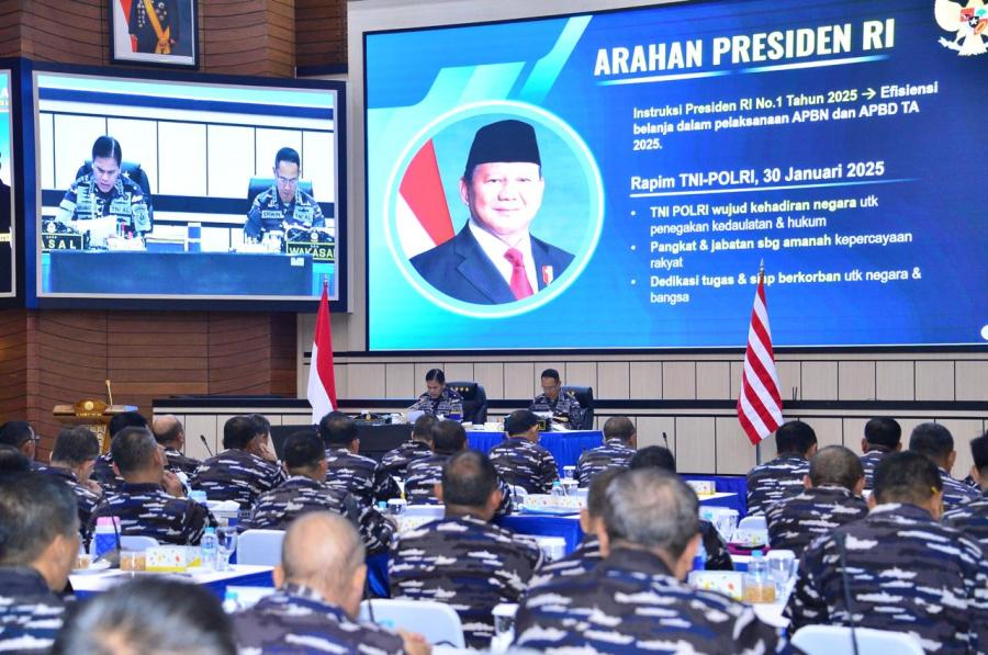 Kepala Staf Angkatan Laut (Kasal) Laksamana TNI Dr. Muhammad Ali didampingi Wakil Kepala Staf Angkatan Laut (Wakasal) Laksamana Madya TNI Erwin S. Aldedharma memimpin secara langsung Rapat Pimpinan (Rapim) TNI AL 2025 bertempat di Auditorium Denma Mabesal, Cilangkap, Jakarta Timur, Kamis (6/2/2025). Kegiatan diikuti sebanyak 141 Perwira yang terdiri dari 106 Perwira Tinggi yang ada dalam struktural TNI AL dan 17 Perwira Menengah Mabesal, serta 35 Perwira Tinggi TNI AL yang berada di luar struktual TNI AL.