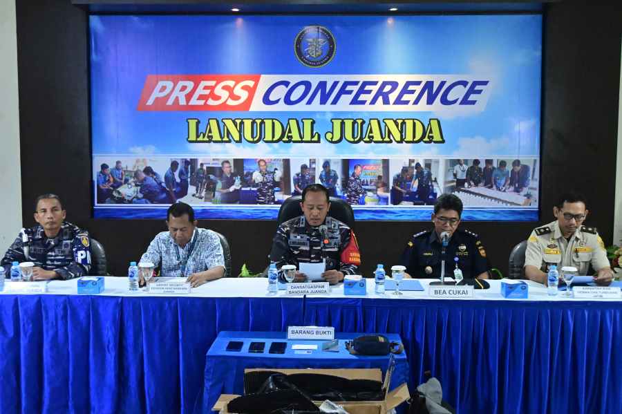 Hal ini diungkapkan Komandan Satgaspam TNl AL Bandara Juanda, Letkol Laut (P) Dani Widjanarka mewakili Komandan Lanudal Juanda Kolonel Laut (P) Dani Achnisundani pada Press Conference yang digelar di Loby Mako Lanudal Juanda Puspenerbal, Sidoarjo, Jawa Timur, Minggu (9/2/2024 kemarin.