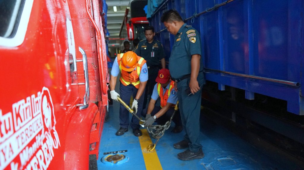 Kementerian Perhubungan Cq Direktorat Jenderal Perhubungan Laut melalui Kantor Kesyahbandaran dan Otoritas Pelabuhan (KSOP) Kelas IV Waingapu melaksanakan inspeksi dan monitoring terhadap kepatuhan kapal Ro-Ro KM Dharma Kartika V dan KM Egon, dan kewajiban Badan Usaha Pelabuhan (BUP) dalam menyediakan fasilitas yang mendukung pembatasan dimensi dan bobot kendaraan di pelabuhan Waingapu, Jumat (21/2/2025).