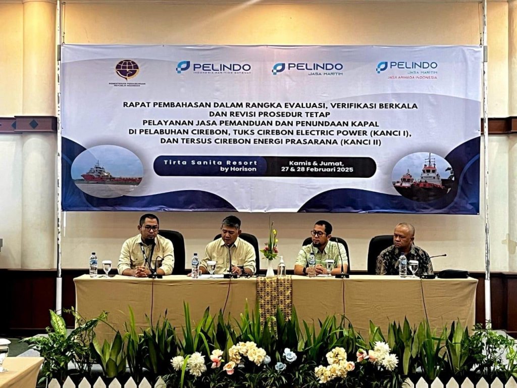 Kepala Kantor Kesyahbandaran dan otoritas Pelabuhan (KSOP)Kelas II Cirebon Ferry Anggoro Hendianto menghadiri acara Revisi Prosedur Tetap Pemanduan dan Penundaan di Perairan Pelabuhan Cirebon bersama PT. Pelindo Regional II Cabang Cirebon, PT. Jasa Armada Indonesia dan Subholding PT. Pelindo Jasa Maritim, Kamis (27/2/2027).