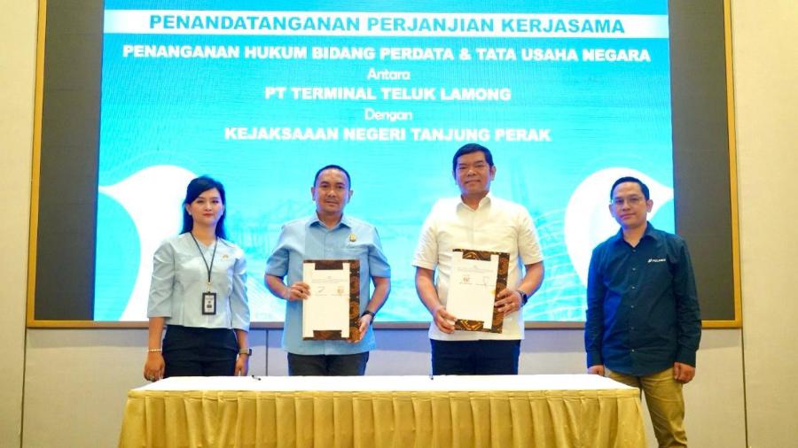 Penandatanganan dilakukan langsung oleh Kepala Kejaksaan Negeri Tanjung Perak, Ricky Setiawan Anas, S.H, M.H., CSSL, dan Direktur Utama PT Terminal Teluk Lamong, David Pandapotan Sirait. Kerja sama ini mencerminkan komitmen kuat kedua belah pihak dalam memperkuat sinergi di bidang hukum, khususnya terkait hukum perdata dan tata usaha negara.