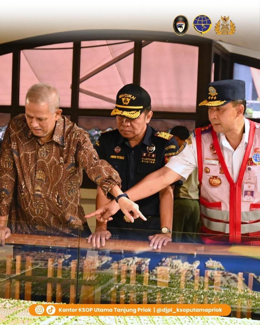 Pelaksana Harian (Plh) Kepala Kantor Kesyahbandaran dan Otoritas Pelabuhan (KSOP) Utama Tanjung Priok Irjen Pol Capt.Hermanta menghadiri kunjungan kerja Wakil Menteri Keuangan III Anggito Abimanyu di Pelabuhan Tanjung Priok – Jakarta Utara, Selasa (29/4/2025) kemarin.