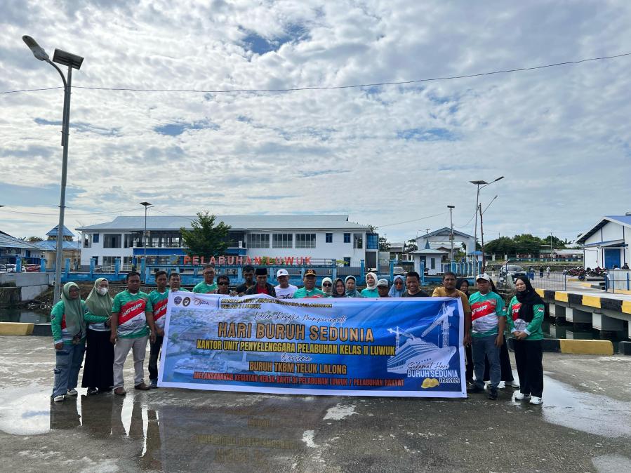 Dalam rangka memperingati Hari Buruh Nasional yang jatuh pada 1 Mei 2025, Kementerian Perhubungan Cq Direktorat Jenderal Perhubungan Laut melalui Kantor Unit Penyelenggara Pelabuhan (KUPP) Kelas II Luwuk – Banggai Provinsi Sulawesi Tengah bersama perusahaan keagenan pelayanan, Tenaga Kerja Bongkar Muat (TKBM) dan seluruh pegawai KUPP Kelas II Luwuk menggelar aksi sosial atau tanpa demo dengan melakukan kerja bakti bersih – bersih di kawasan pelabuhan umum dan pelabuhan rakyat Luwuk – Banggai, Kamis (1/5/2025) kemarin.